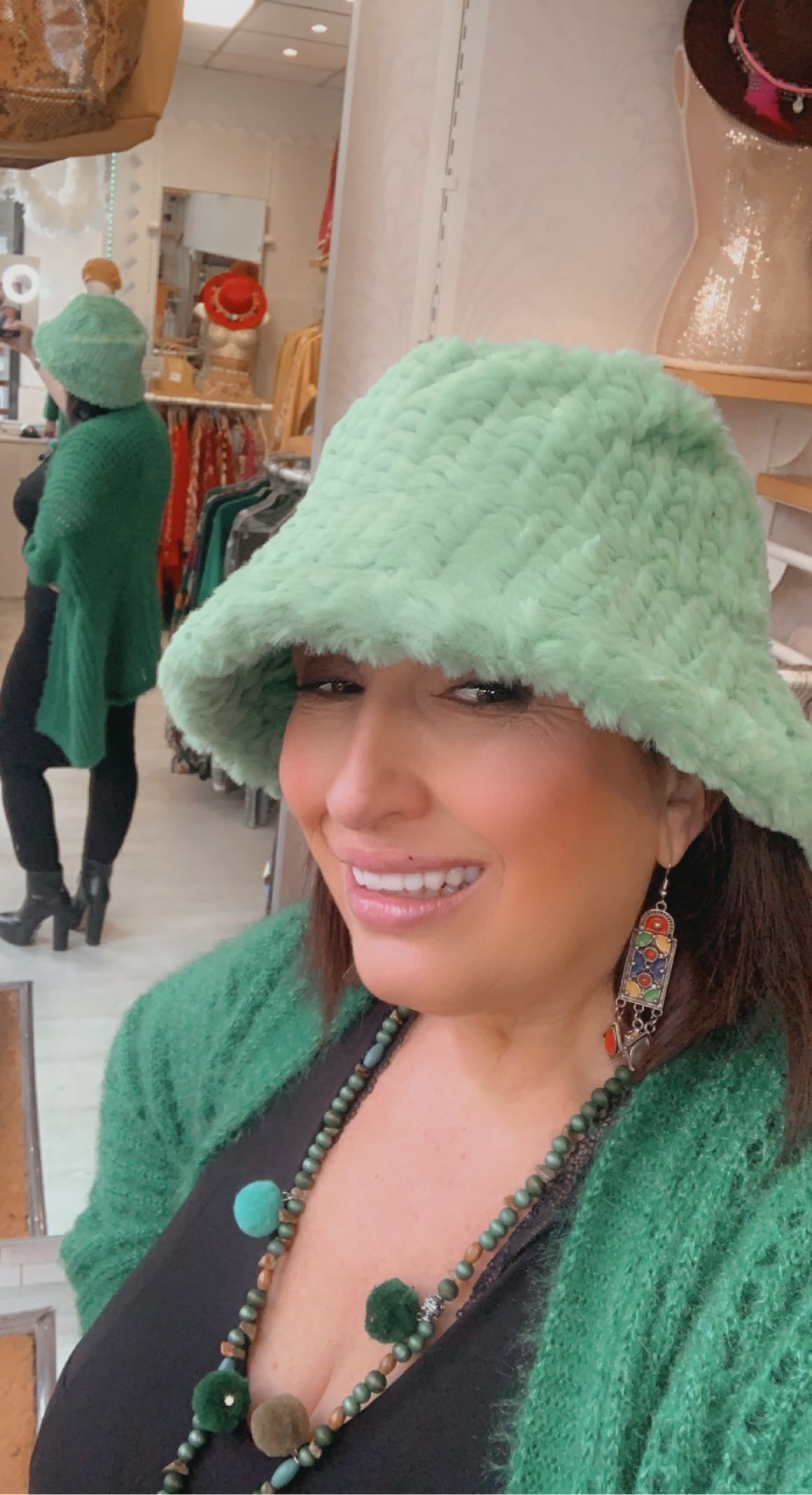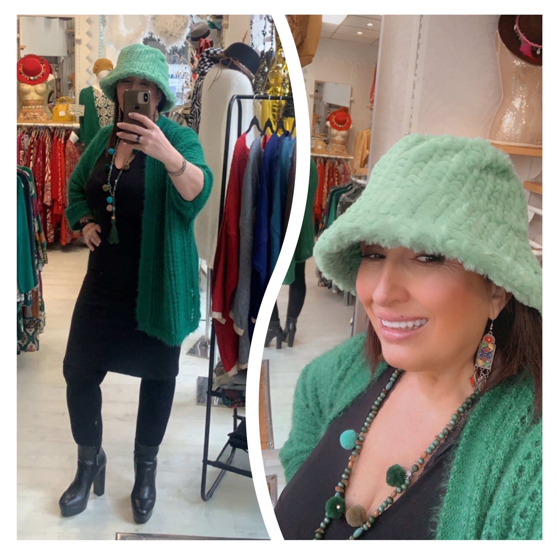 Très jolie Bob fausse fourrure à l’extérieur pour parfaire vos tenues en beauté ! Assez chaud pour cet hiver. En taille unique mais convient à pas mal de personnes avec son lien à l’intérieur pour rétrécir si nécessaire.