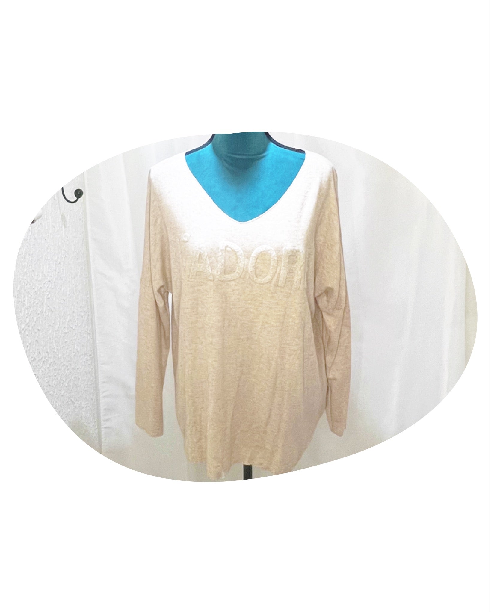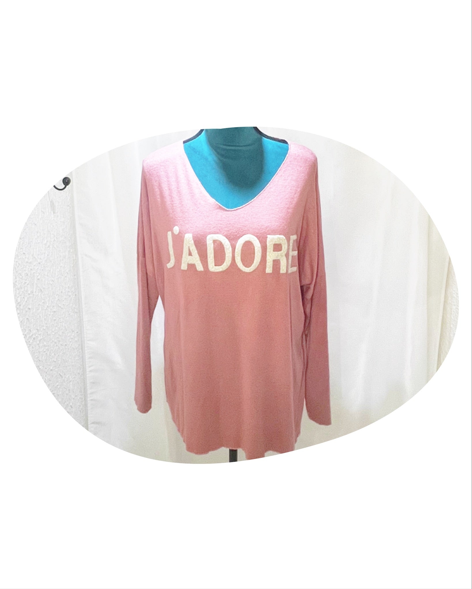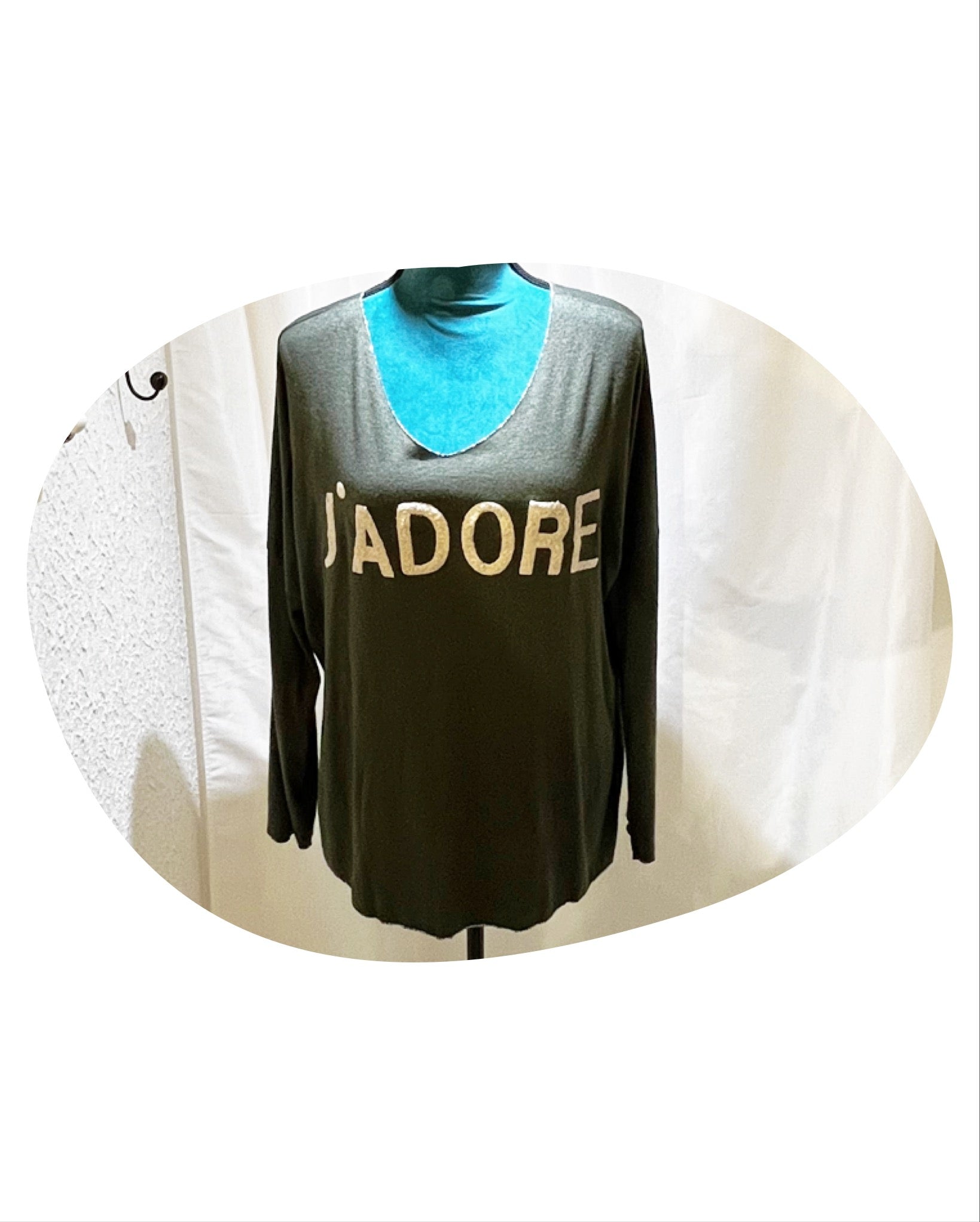 Emprunté au vestiaire sportswear, le sweat fait désormais partie des essentiels du dressing. Ce sweat à message J’ADORE apporte une touche personnelle à une tenue. On aime son volume ample & son liserer argent discret au col V aux manches et autour de la taille , parfait pour un look stylé et une allure cool.