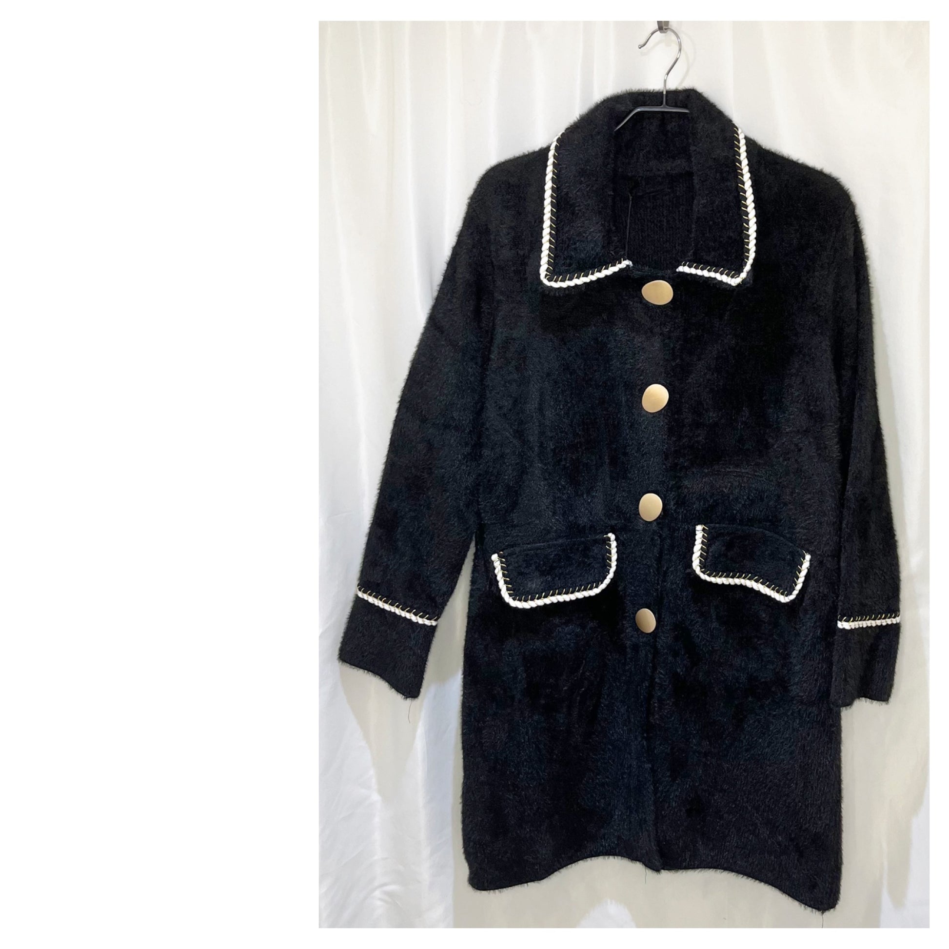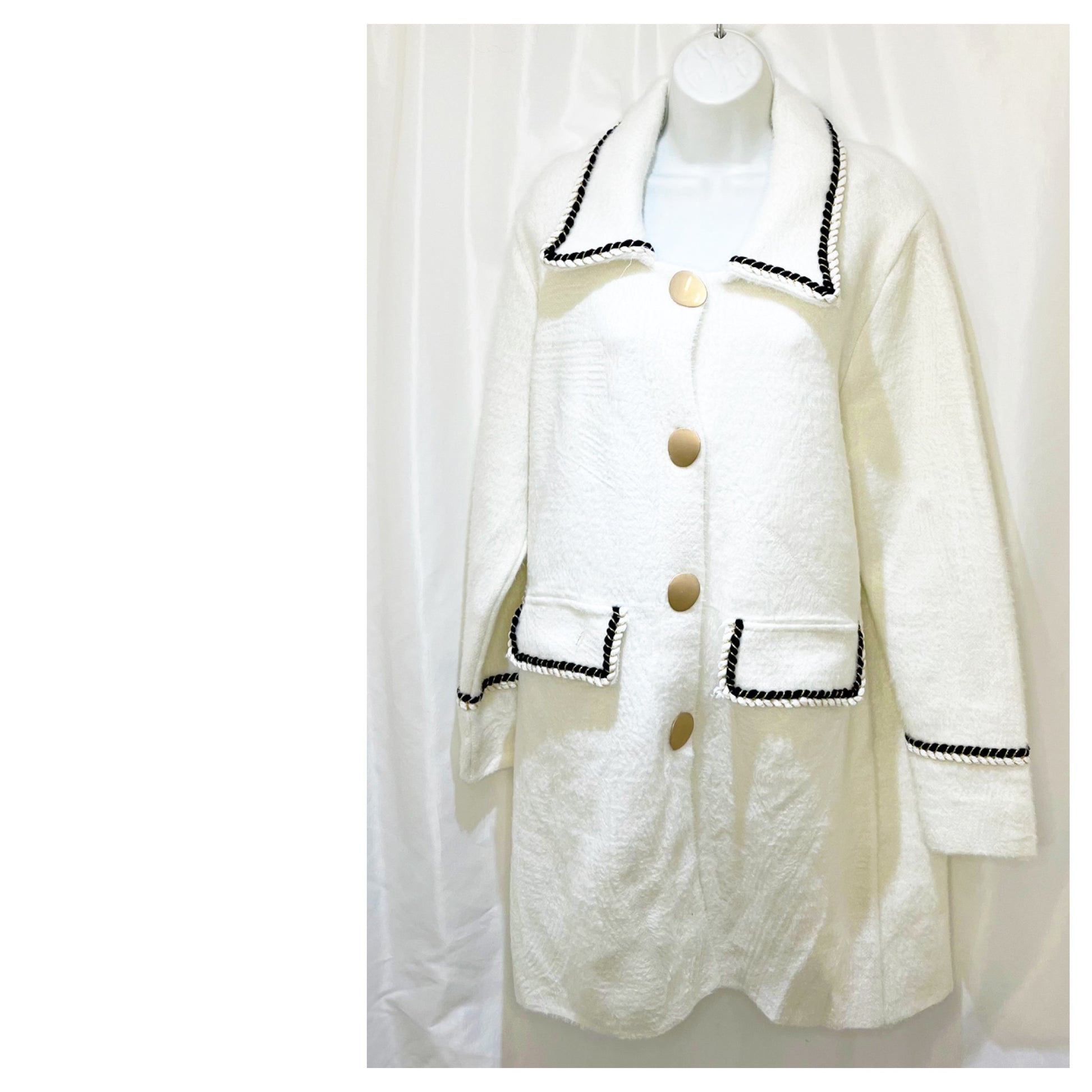 Adoptez un look chic et raffiné avec le manteau mi long CoCo, conçu avec une impression fausse fourrure pour les femmes qui recherchent élégance le Chic & confort pendant les mois plus froids! Ce manteau, avec ses poches latérales pratiques à rabats avec 2 liserés blanc et noir et doré. Son grand col élégant avec également 2 liserés et sa dorure discrète distinctif, est parfait pour les journées d'hiver où vous souhaitez rester stylée & allure en étant bien au chaud.