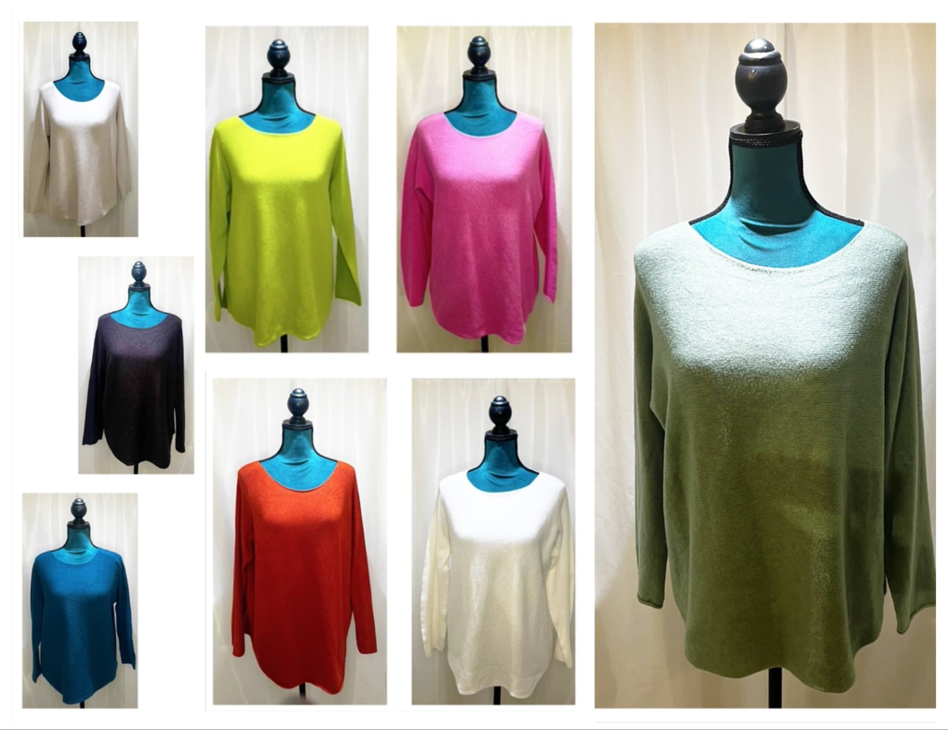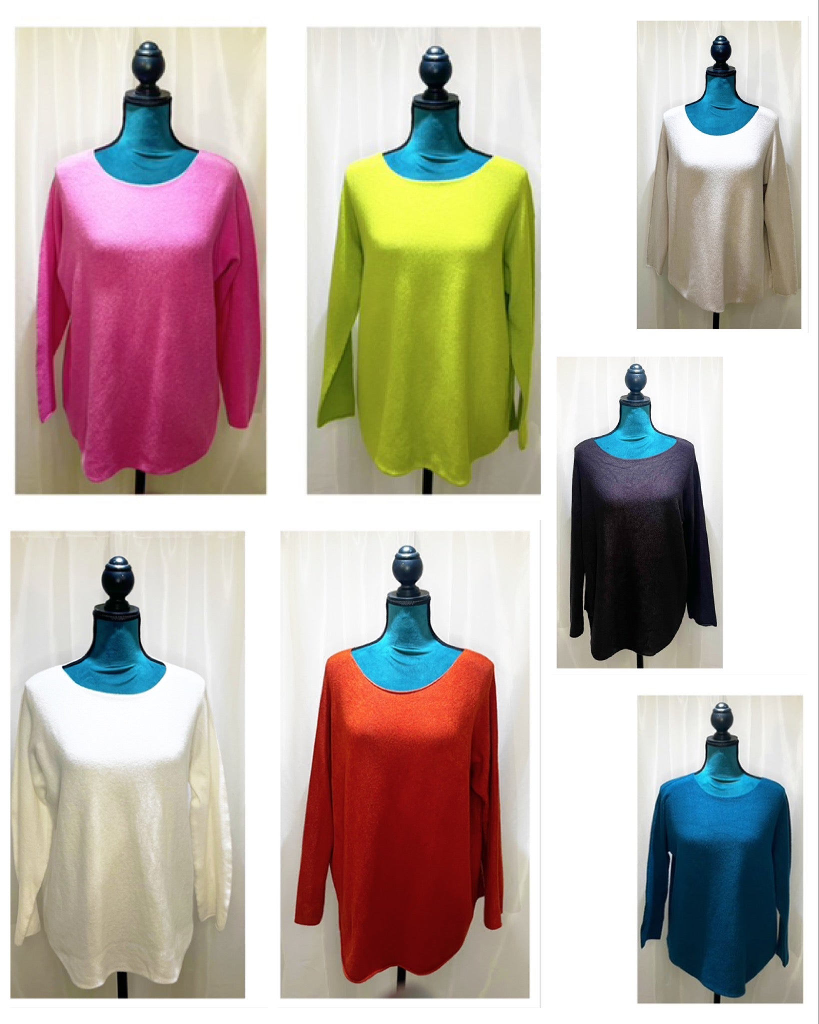 Pull tout doux sans couture et très chaud taille unique coloris unis forme légèrement arrondie en bas du pull pour un côté très cool