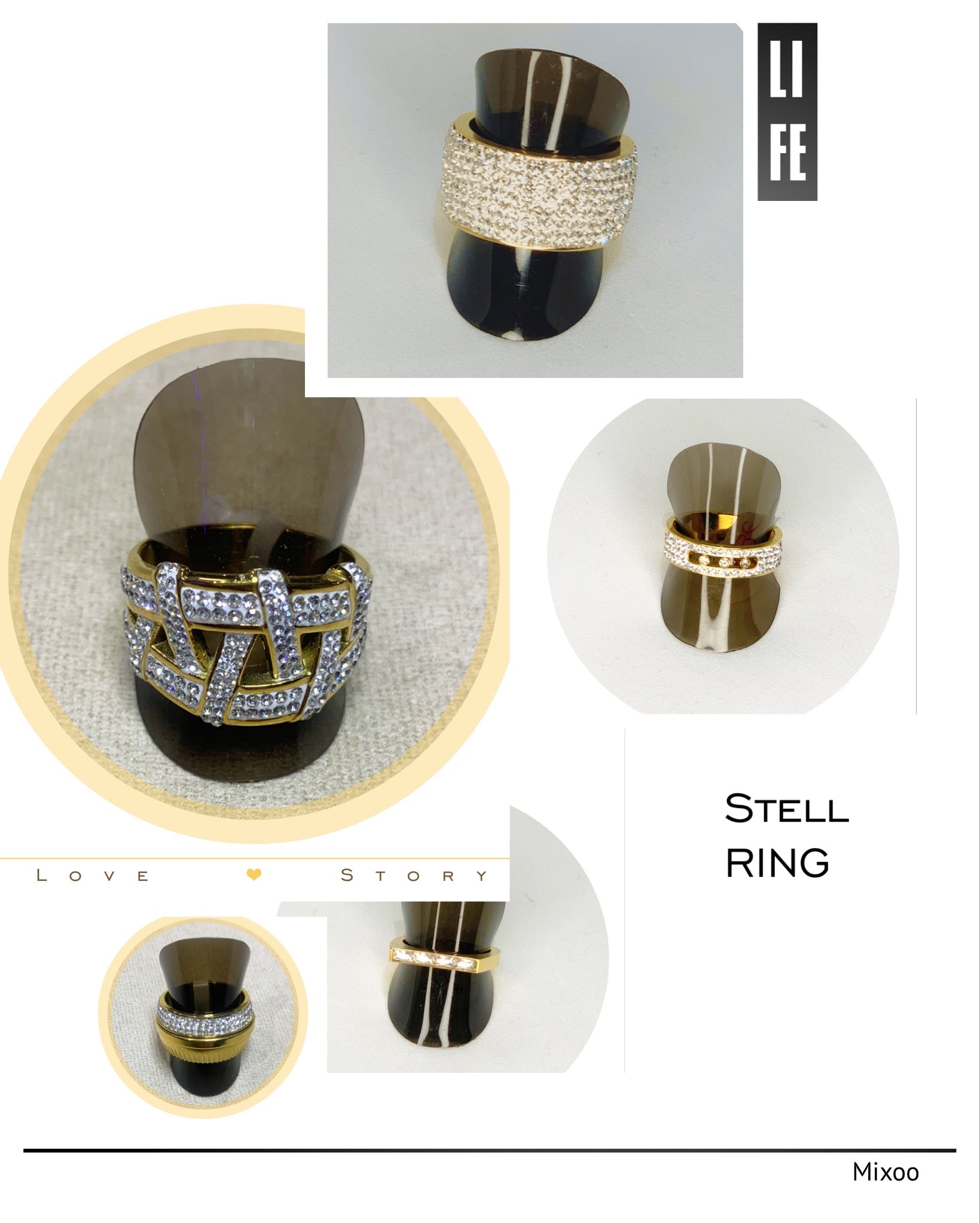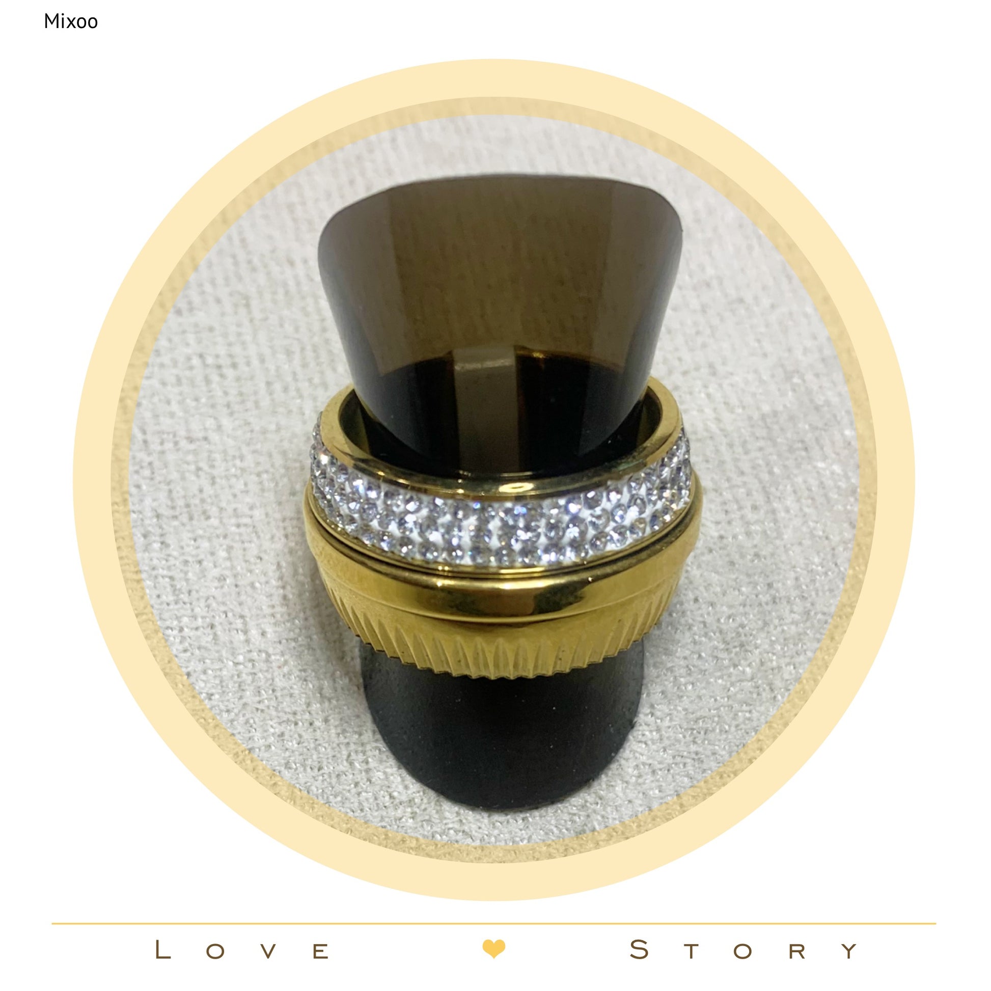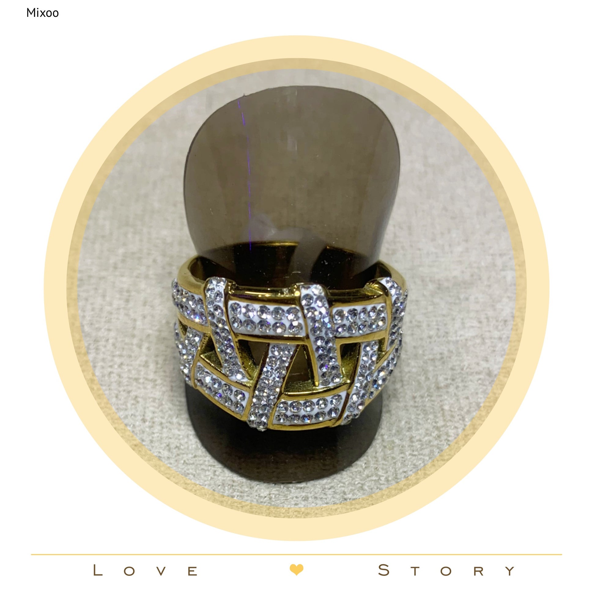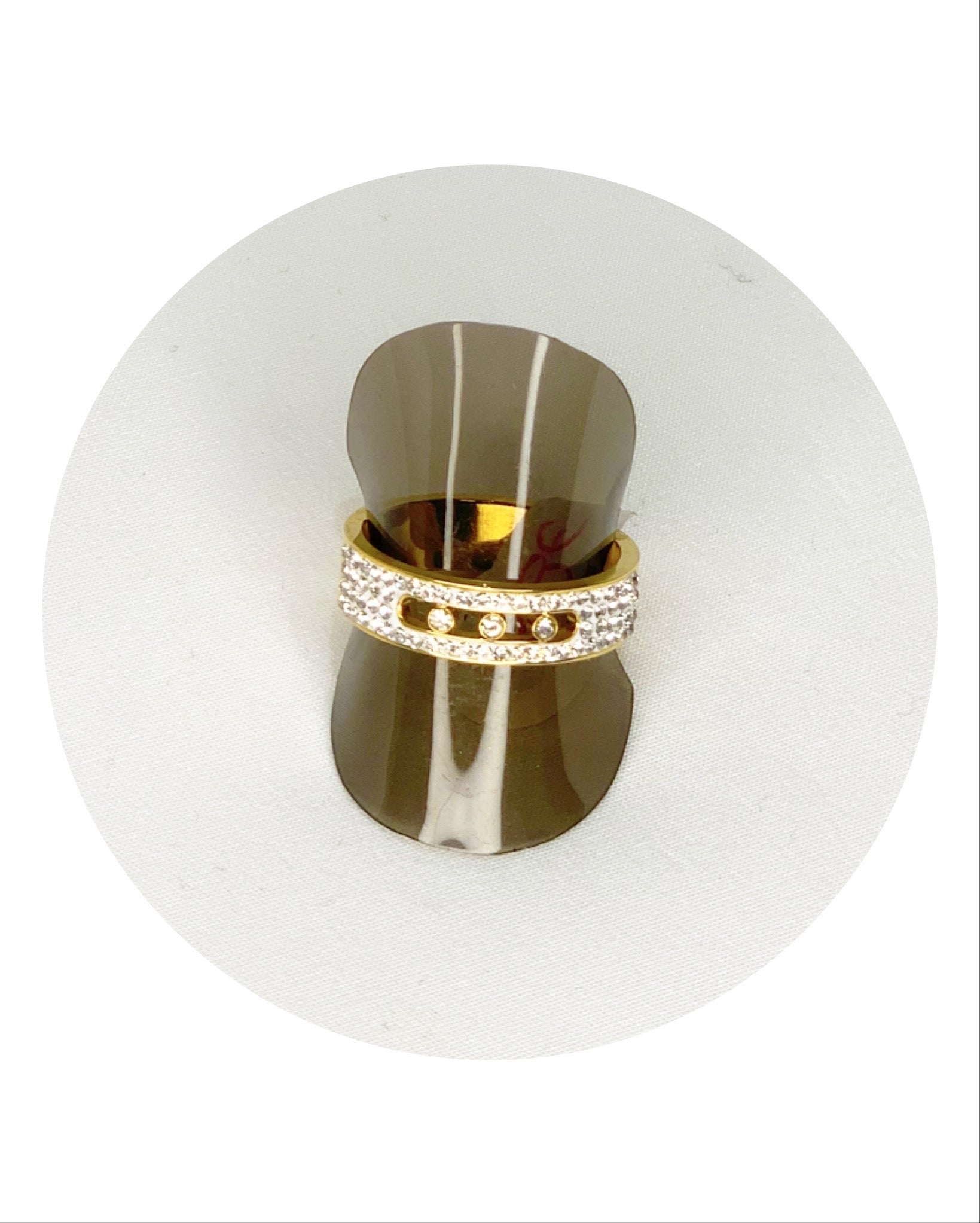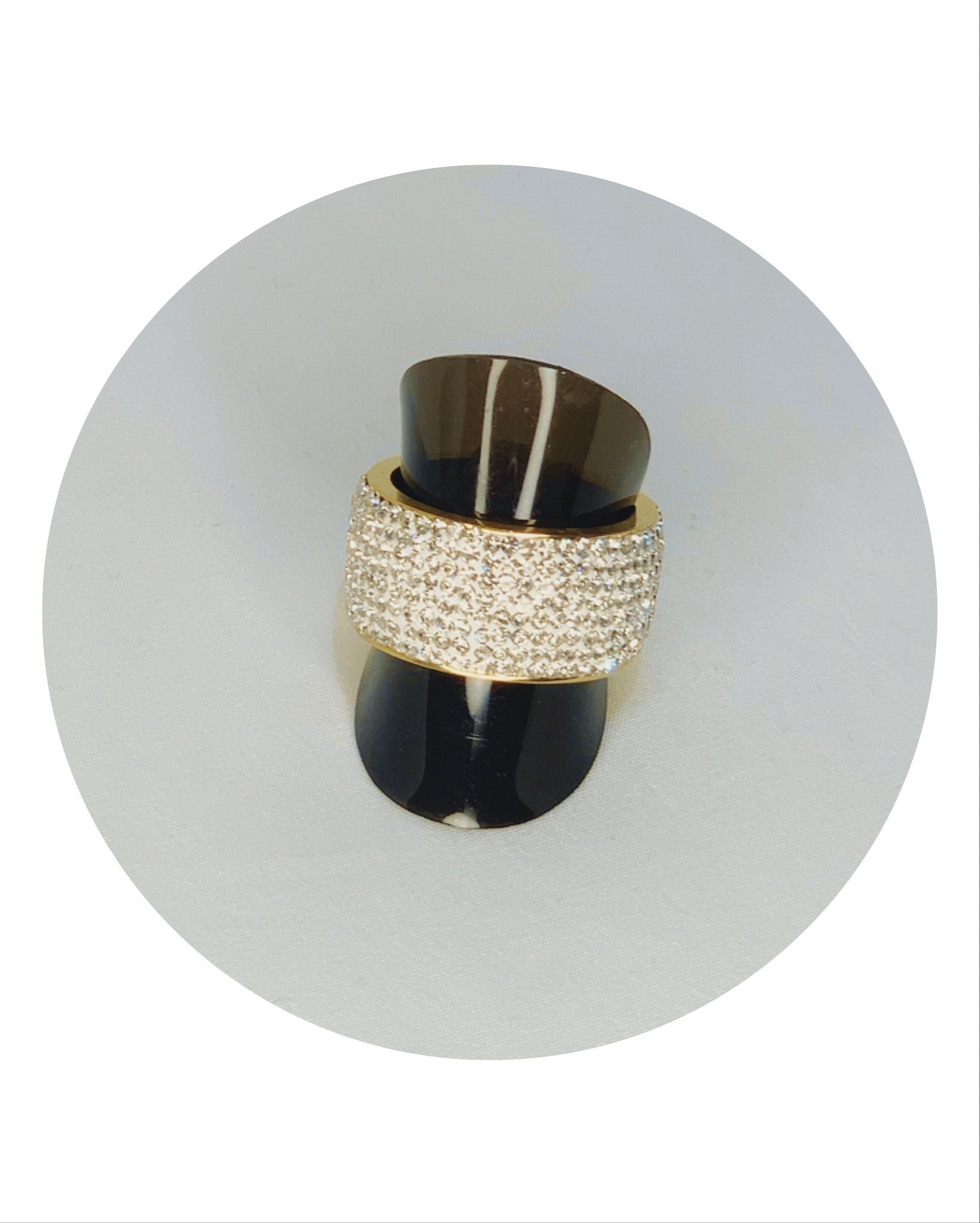 Bague Acier Doré et strass et modèle Chic
