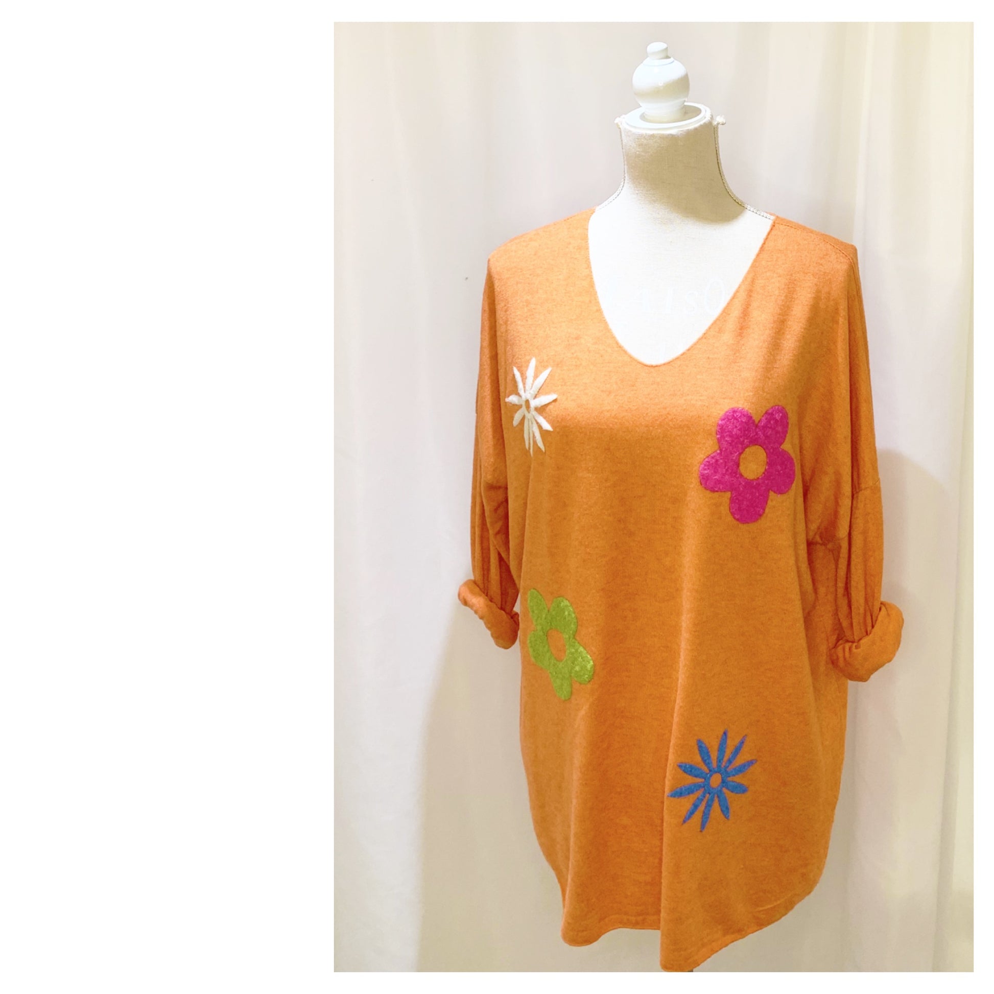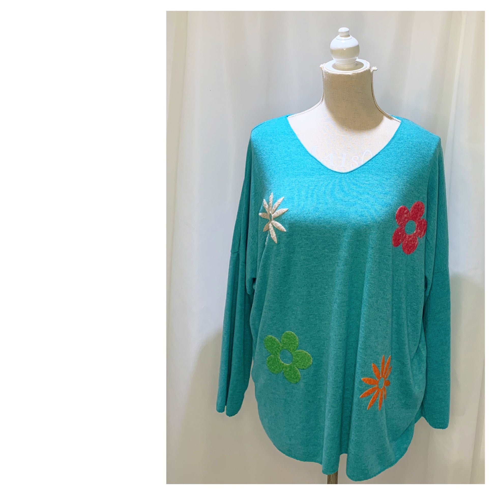 Ce Pull fin & chaude coloris uni avec ses fleurs colorées modèle Anémone est
