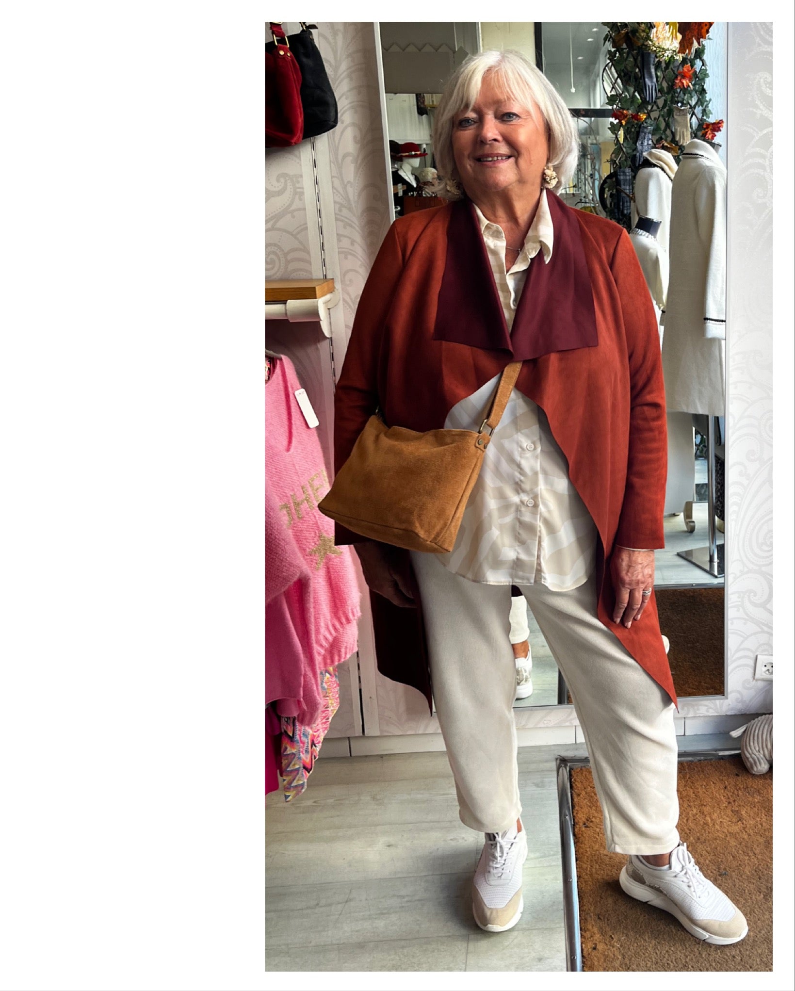Veste avec rabat & Col modèle Oslo fabriqué en 🇫🇷 droite aspect suédine sans bouton sans poche droites taille unique Modèle Oslo différents coloris
